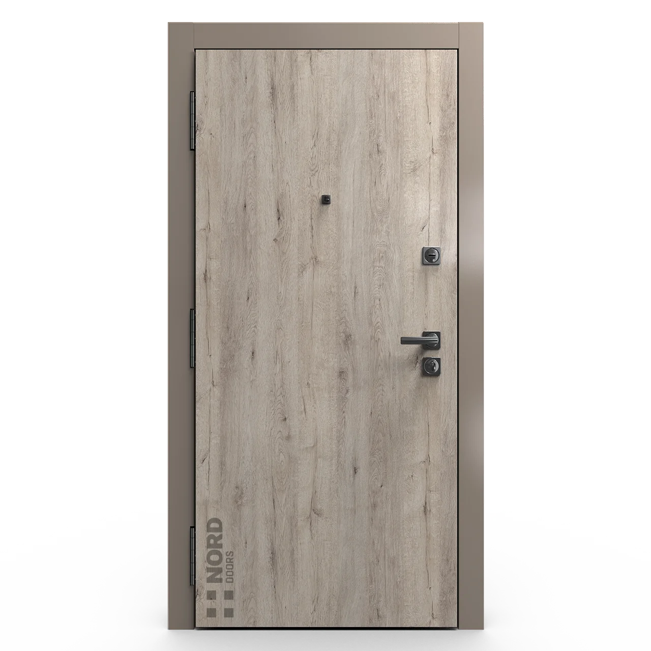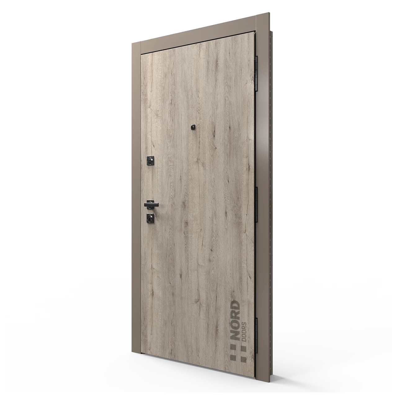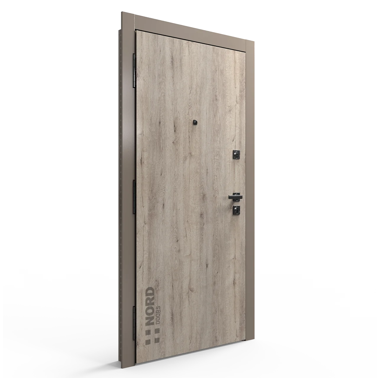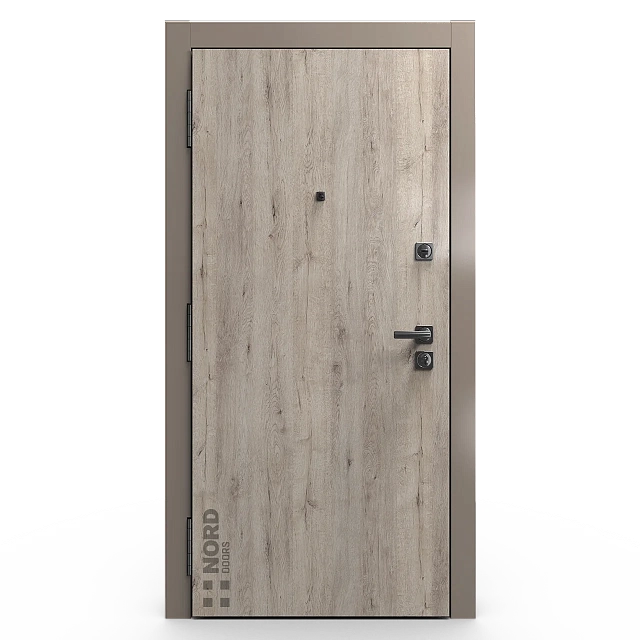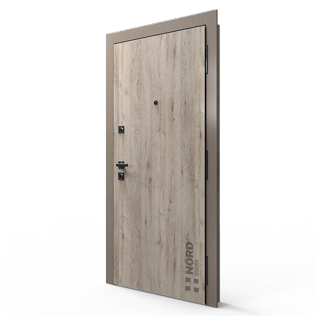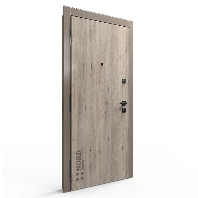 Два замкнутых цельногнутых профиля дверной коробки скреплены между собой через пробковый утеплитель, не имеют прямого контакта по всей плоскости соединения, тем самым обеспечивают реальный терморазрыв (отсутствие промерзания коробки, образования наледи и конденсата, а также избыточных затрат на отопление).