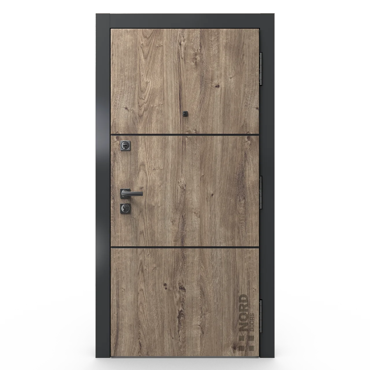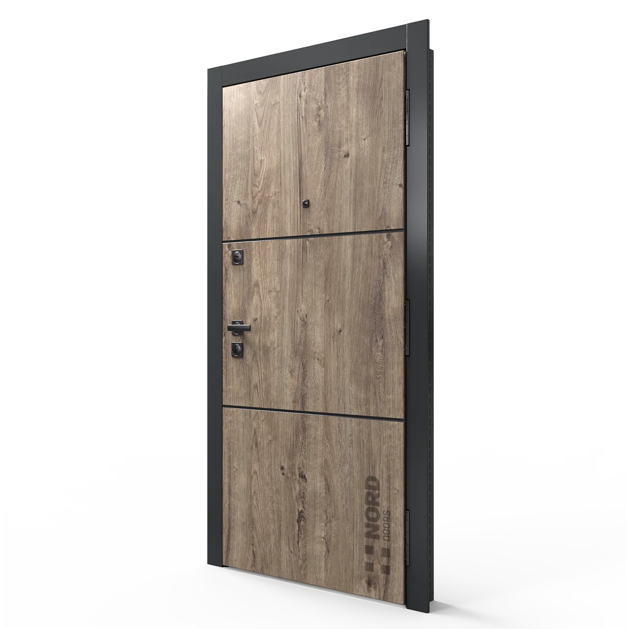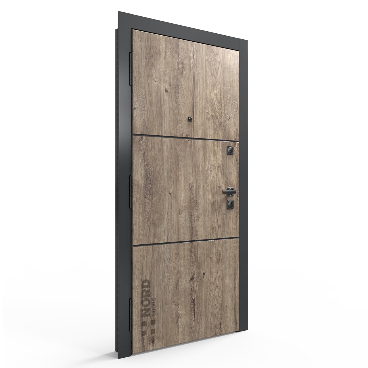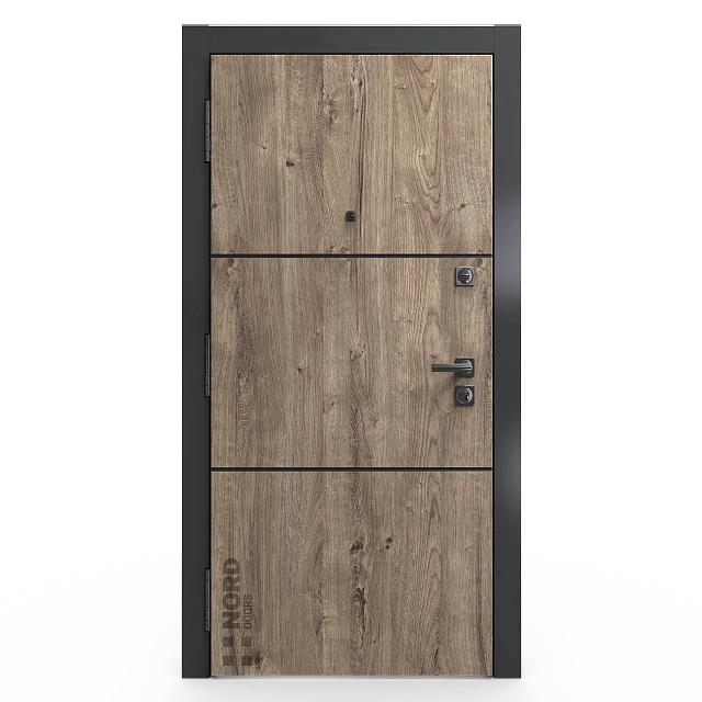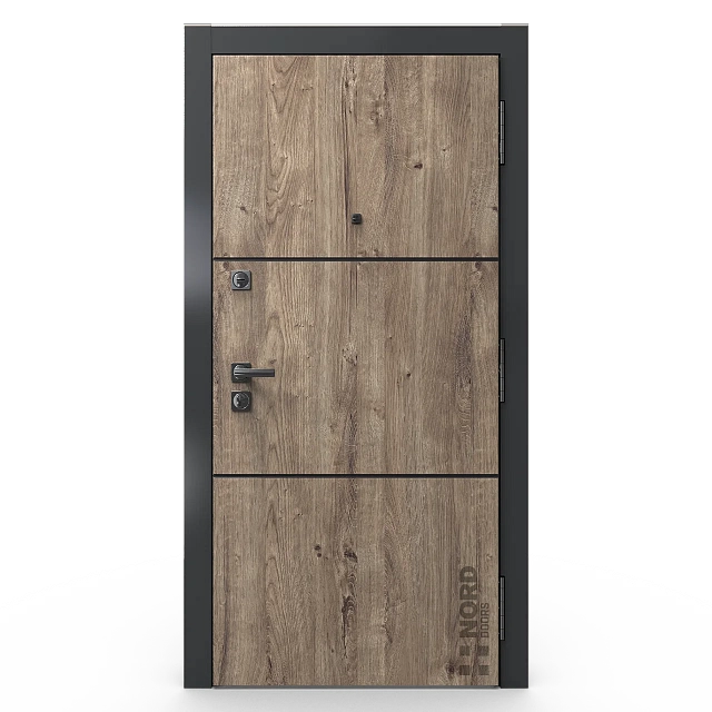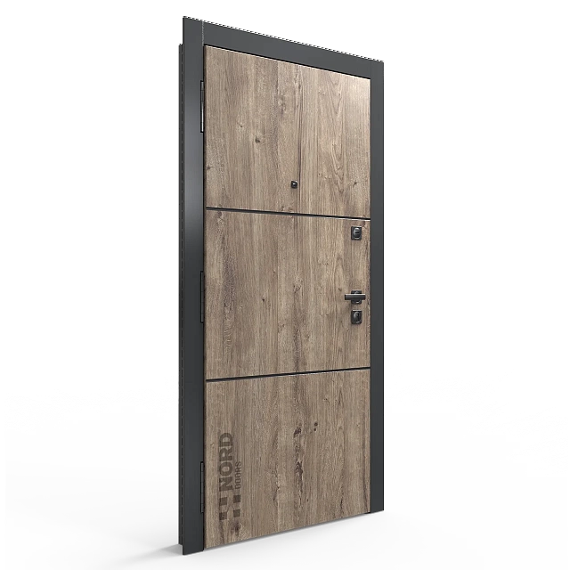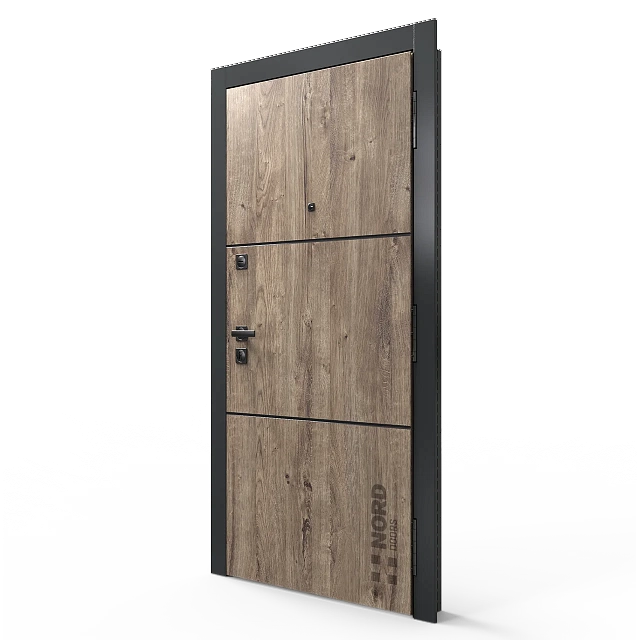 Два замкнутых цельногнутых профиля дверной коробки скреплены между собой через пробковый утеплитель, не имеют прямого контакта по всей плоскости соединения, тем самым обеспечивают реальный терморазрыв (отсутствие промерзания коробки, образования наледи и конденсата, а также избыточных затрат на отопление).