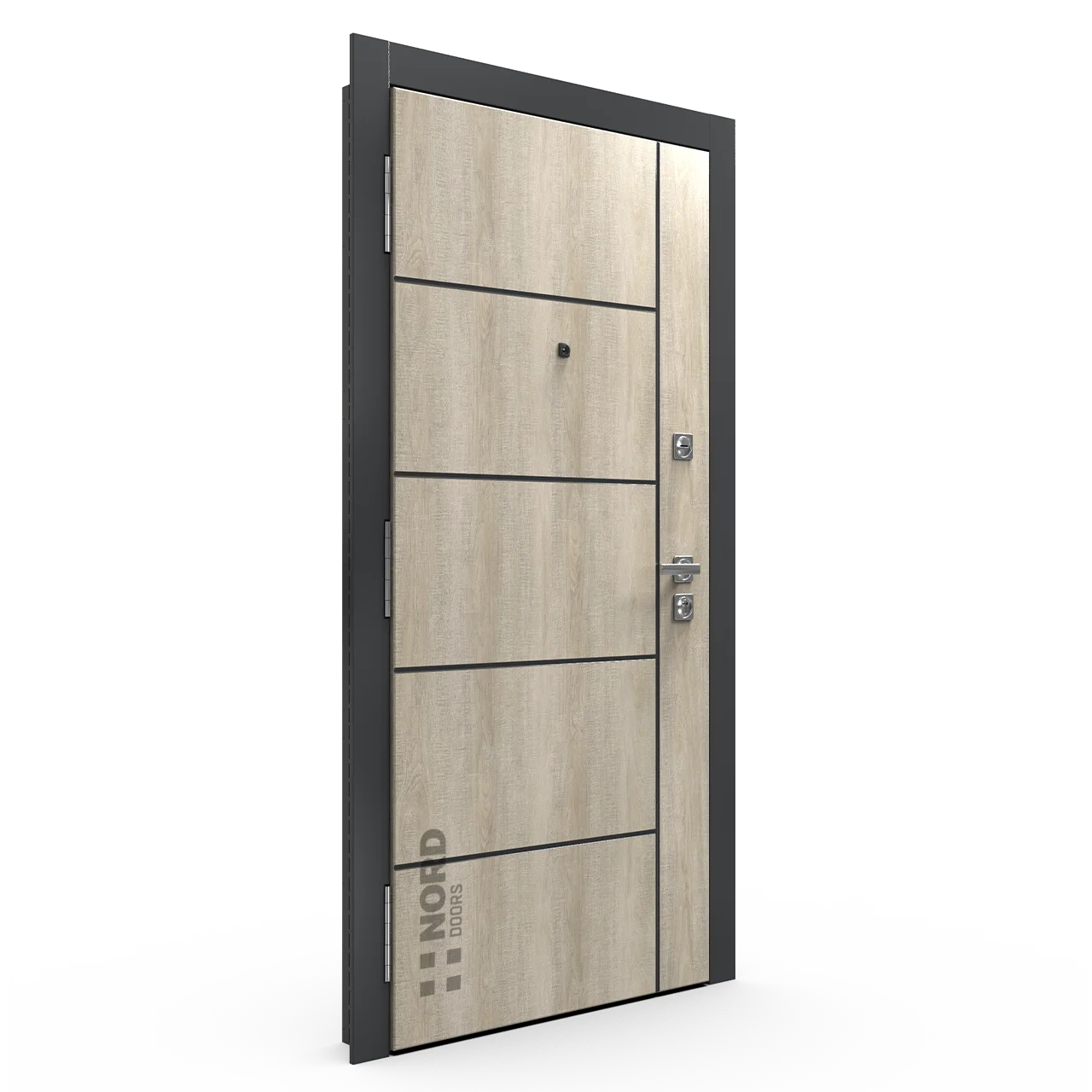 Каркас полотна изготовлен из массива ценных пород древесины (сапеле), усилен плитами ДСП 18 мм и МДФ 3 мм с каждой из сторон.