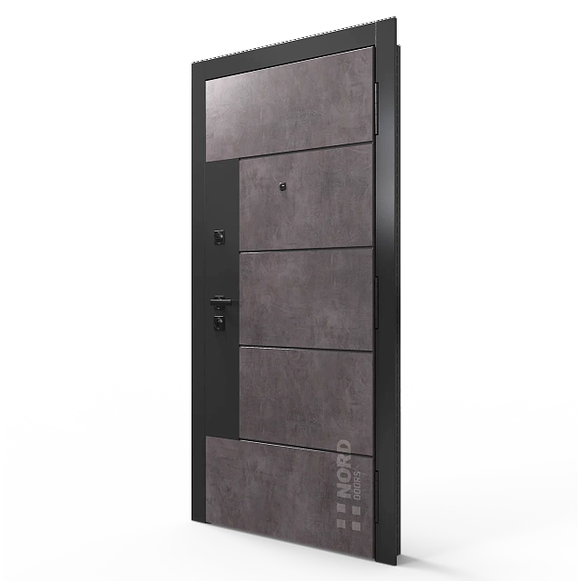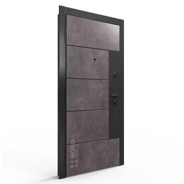 Два замкнутых цельногнутых профиля дверной коробки скреплены между собой через пробковый утеплитель, не имеют прямого контакта по всей плоскости соединения, тем самым обеспечивают реальный терморазрыв (отсутствие промерзания коробки, образования наледи и конденсата, а также избыточных затрат на отопление).