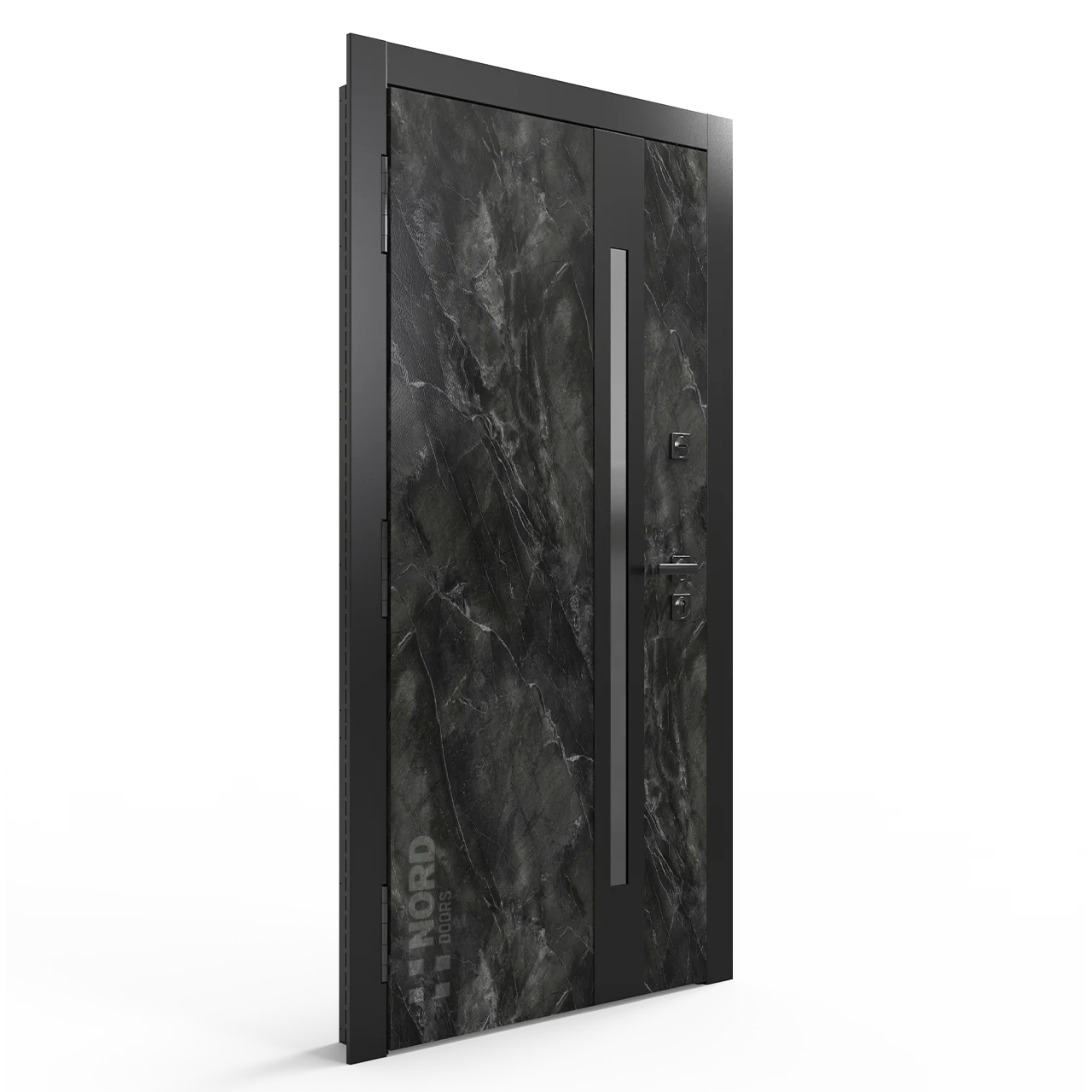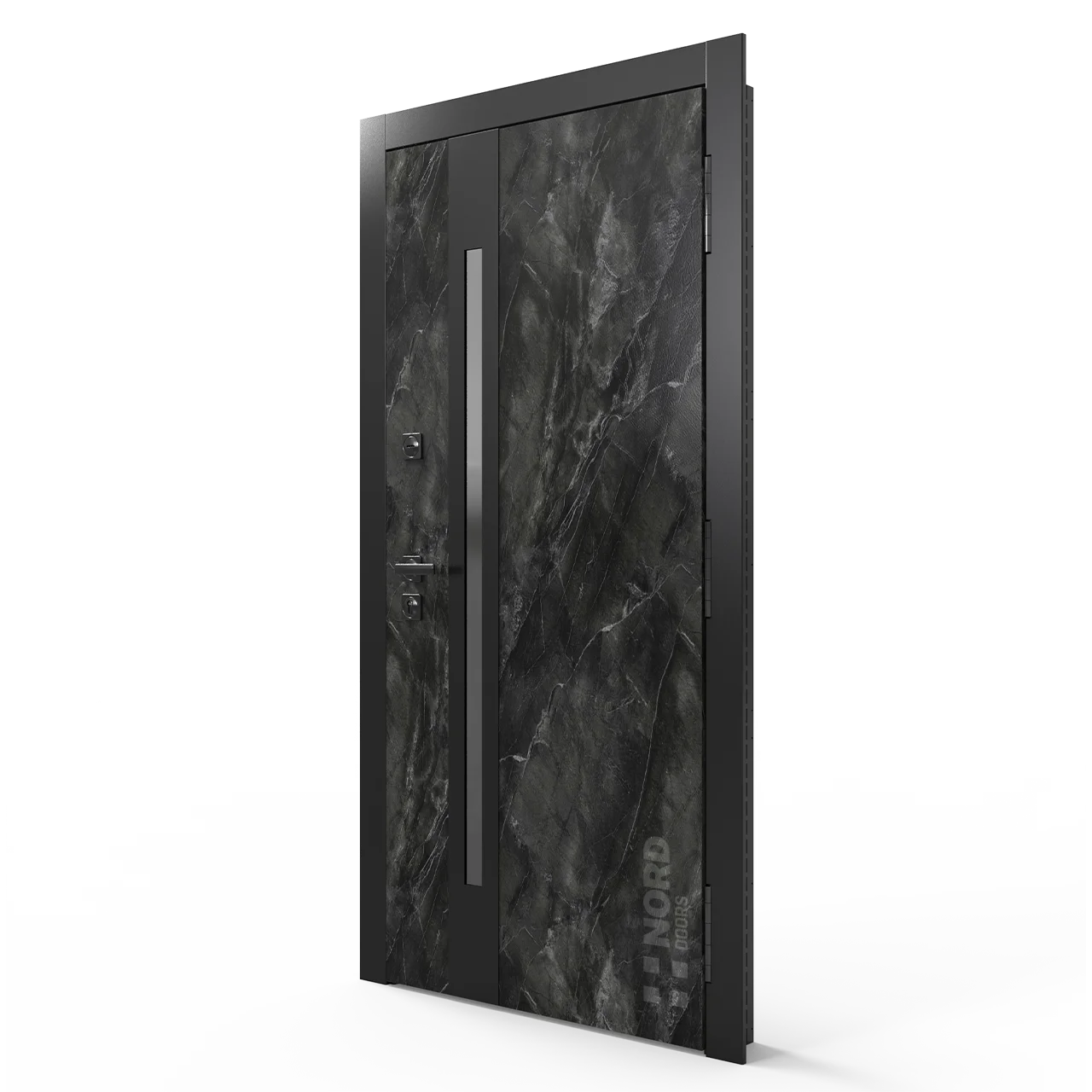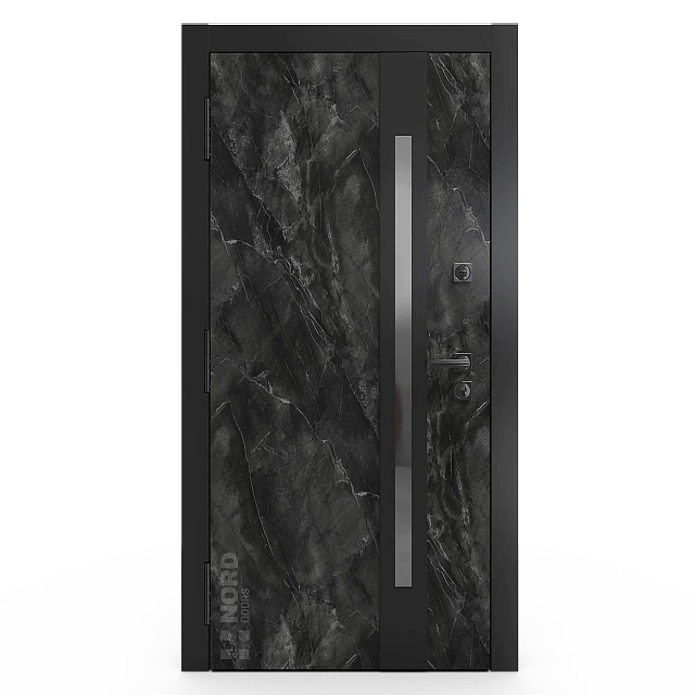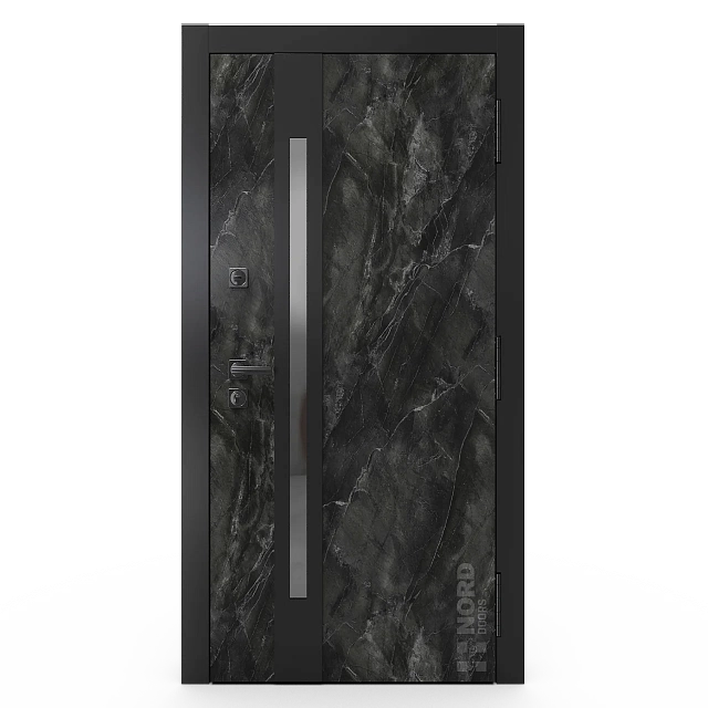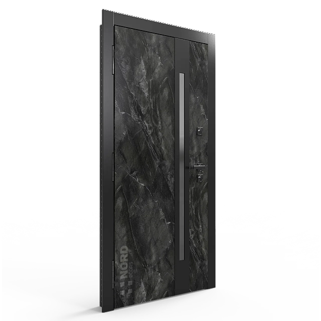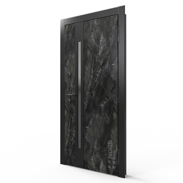 Два замкнутых цельногнутых профиля дверной коробки скреплены между собой через пробковый утеплитель, не имеют прямого контакта по всей плоскости соединения, тем самым обеспечивают реальный терморазрыв (отсутствие промерзания коробки, образования наледи и конденсата, а также избыточных затрат на отопление).
