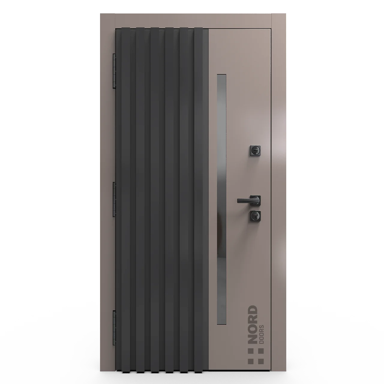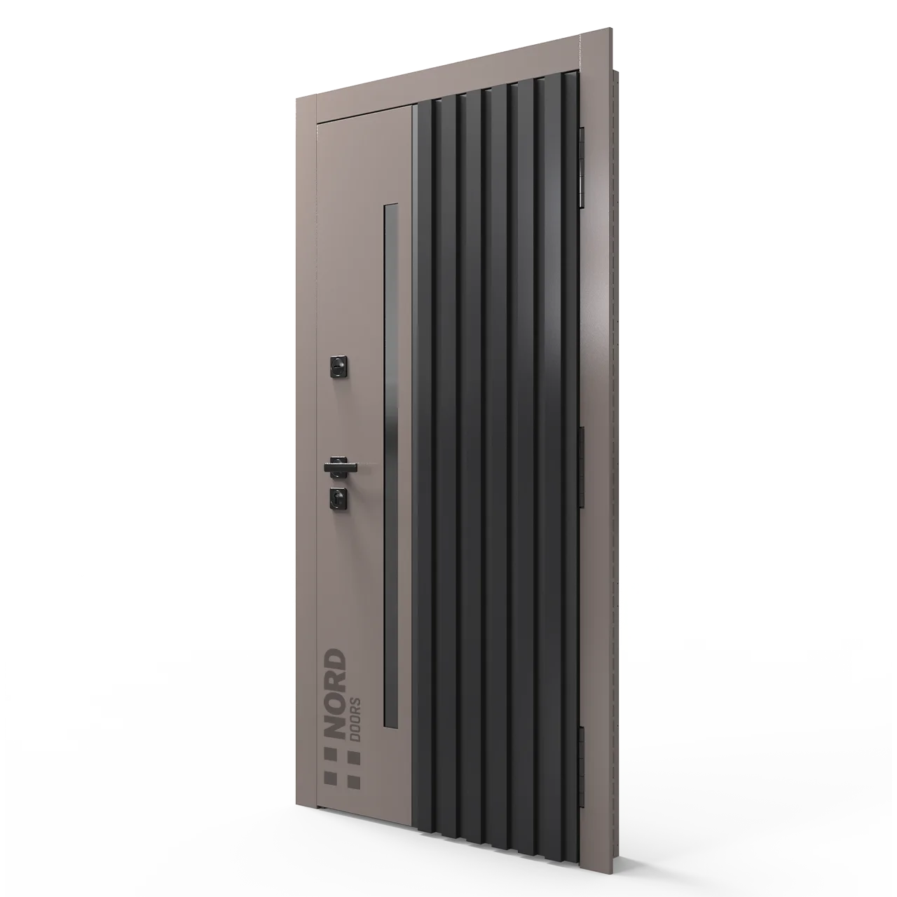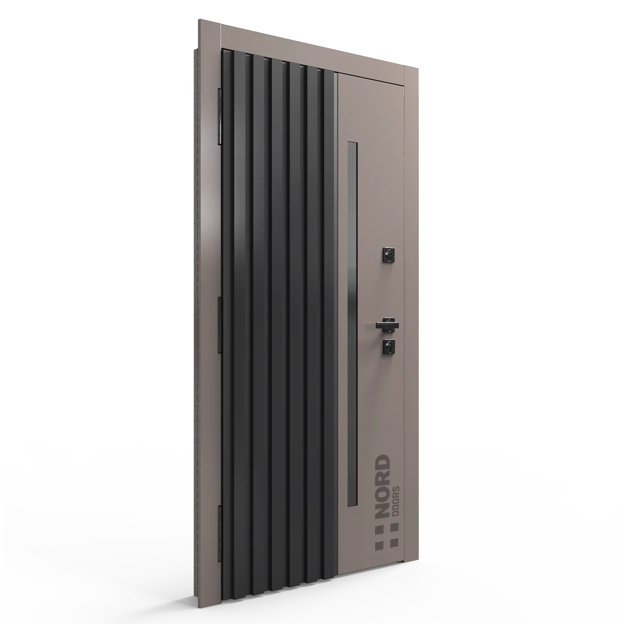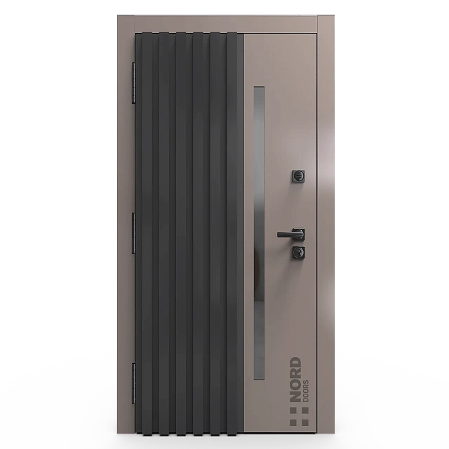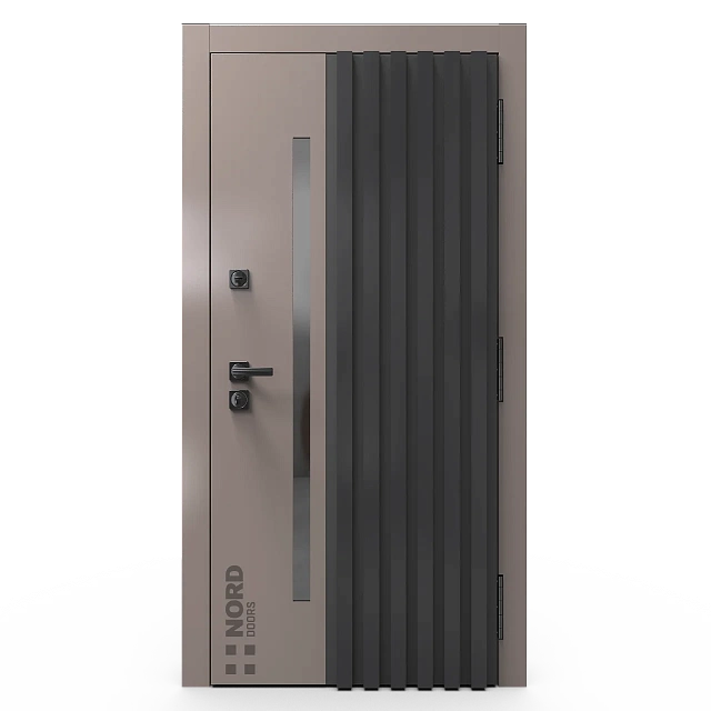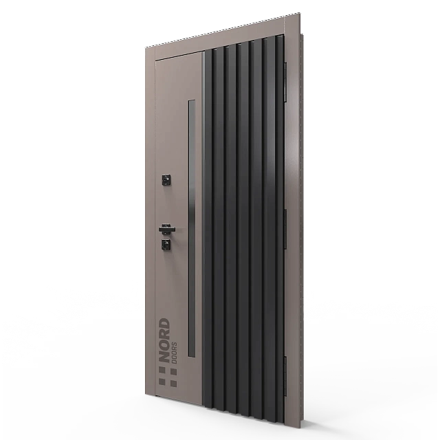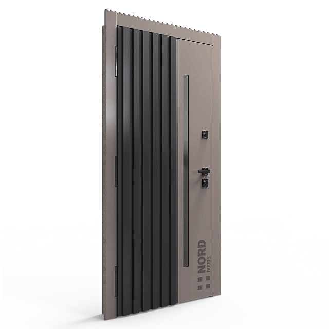 Два замкнутых цельногнутых профиля дверной коробки скреплены между собой через пробковый утеплитель, не имеют прямого контакта по всей плоскости соединения, тем самым обеспечивают реальный терморазрыв (отсутствие промерзания коробки, образования наледи и конденсата, а также избыточных затрат на отопление).