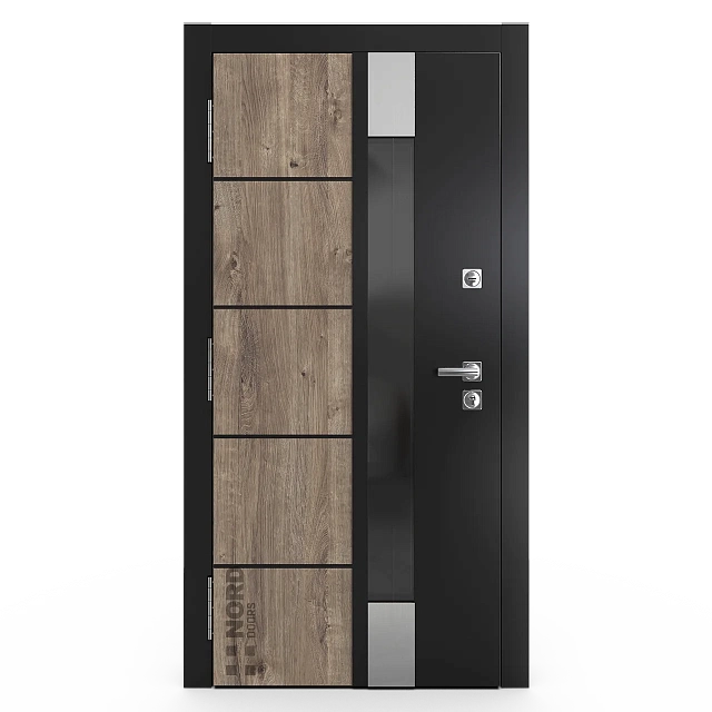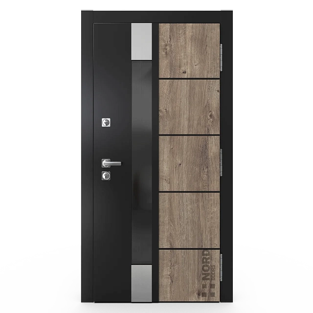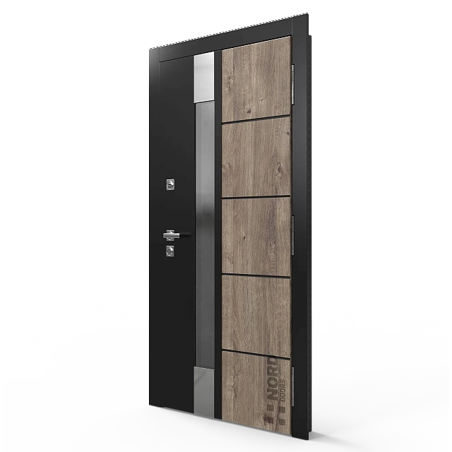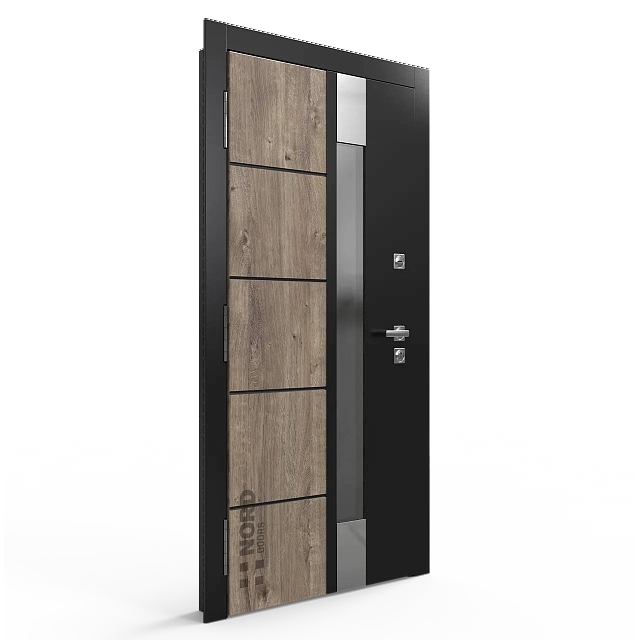 Два замкнутых цельногнутых профиля дверной коробки скреплены между собой через пробковый утеплитель, не имеют прямого контакта по всей плоскости соединения, тем самым обеспечивают реальный терморазрыв (отсутствие промерзания коробки, образования наледи и конденсата, а также избыточных затрат на отопление).