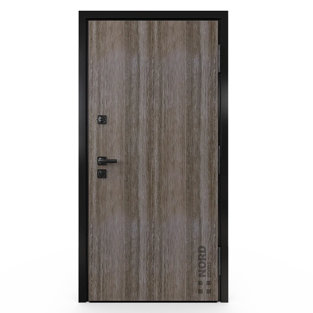 - NORD 85 — элитная утепленная дверь с технологией терморазрыва коробки и полотна для исключения мостика холода, термоизолирующим заполнением и двойным полноценным контуром уплотнения.