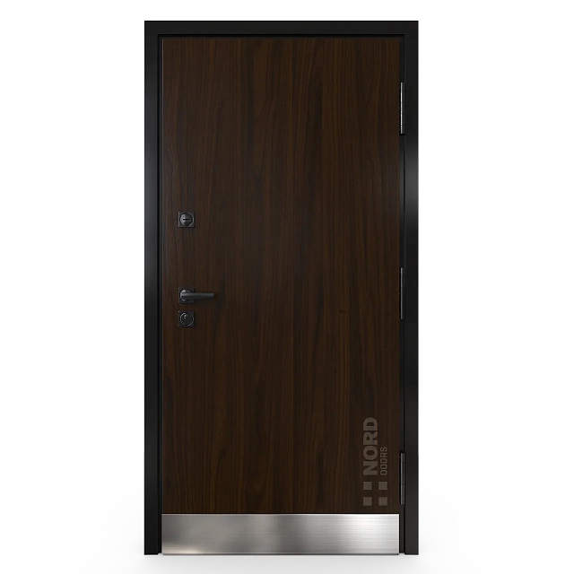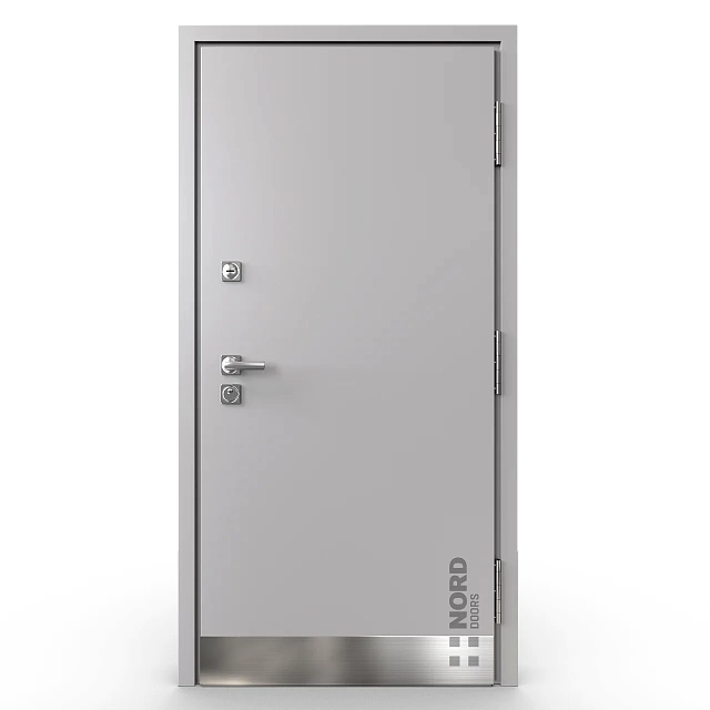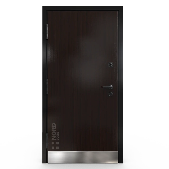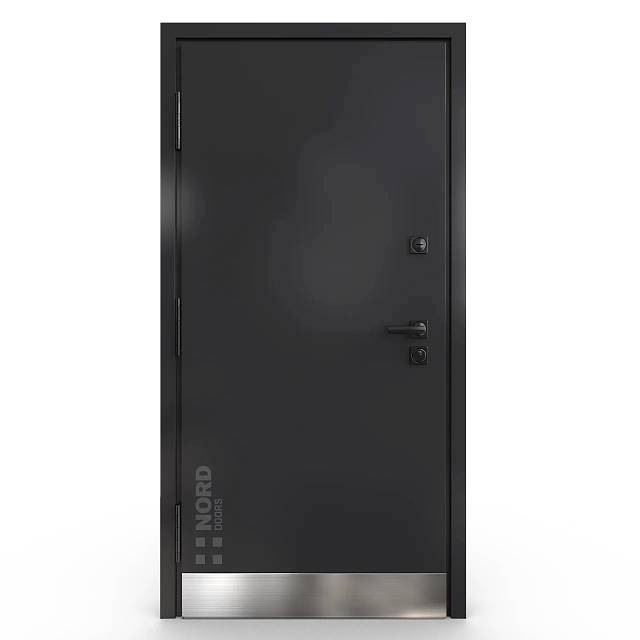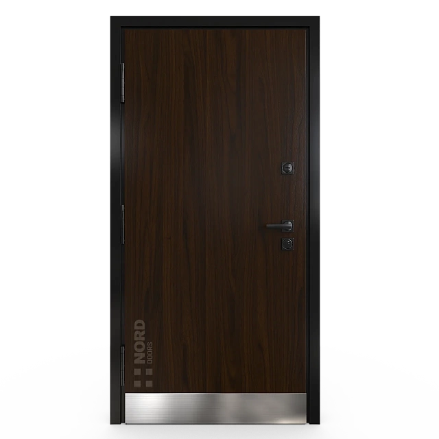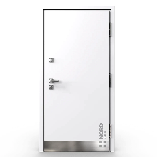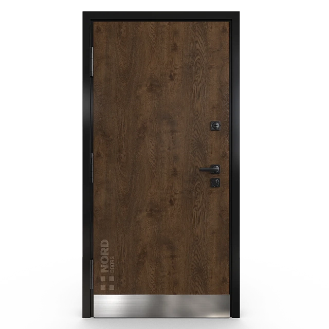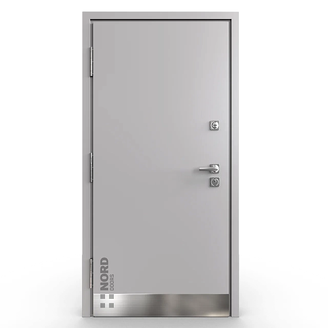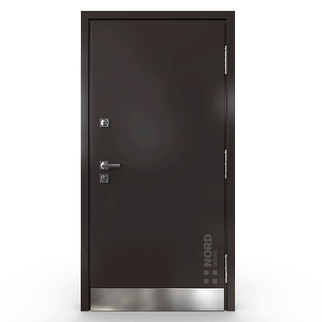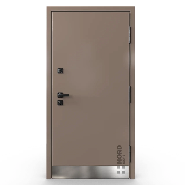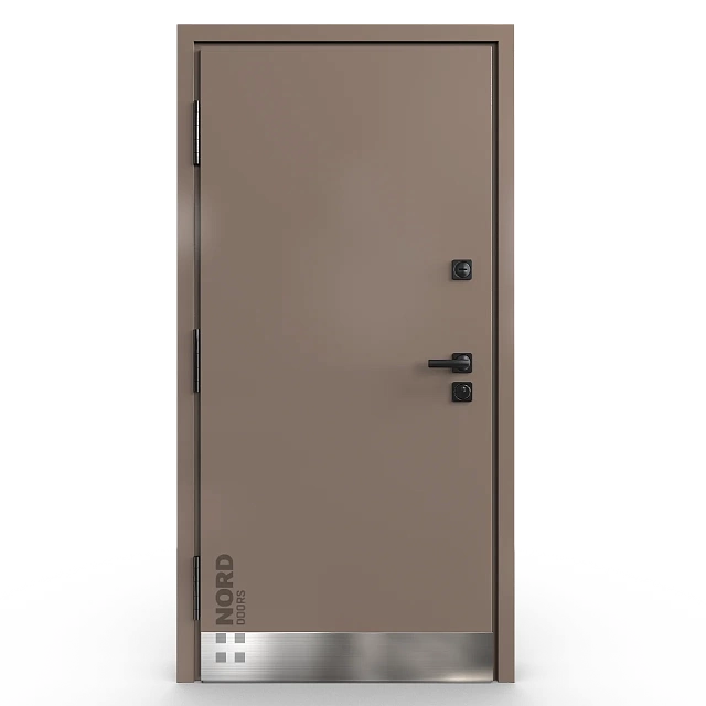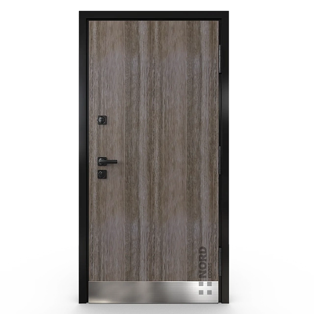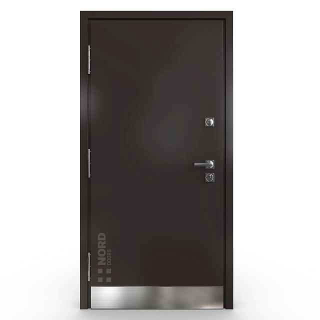 - NORD 85 — элитная утепленная дверь с технологией терморазрыва коробки и полотна для исключения мостика холода, термоизолирующим заполнением и двойным полноценным контуром уплотнения.