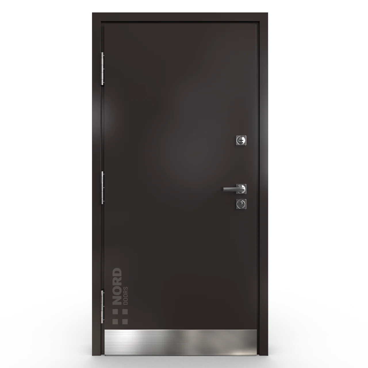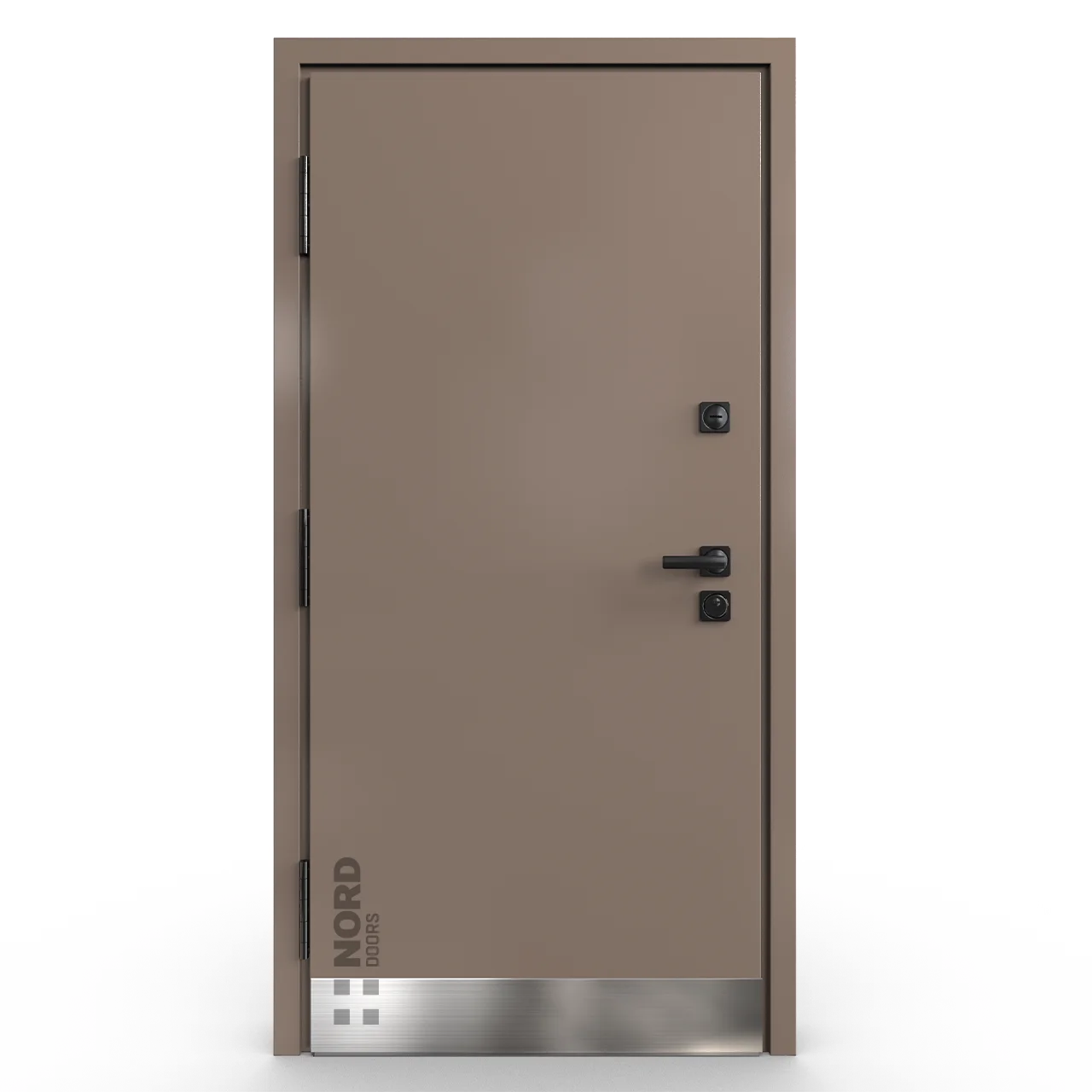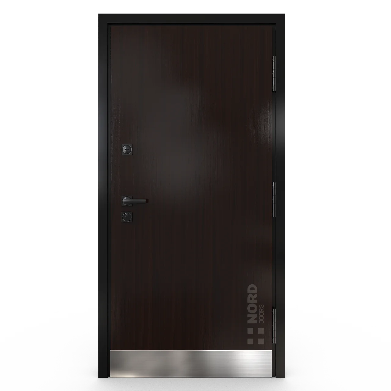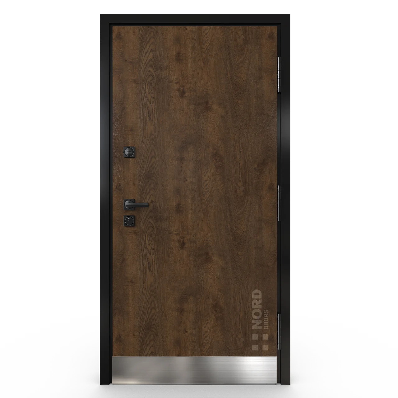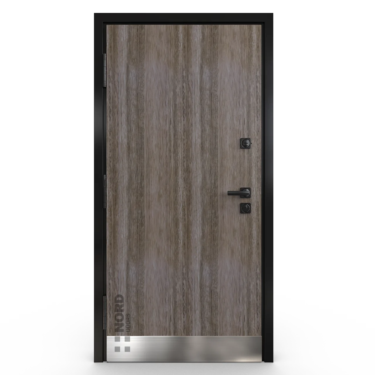 - NORD 85 — элитная утепленная дверь с технологией терморазрыва коробки и полотна для исключения мостика холода, термоизолирующим заполнением и двойным полноценным контуром уплотнения.