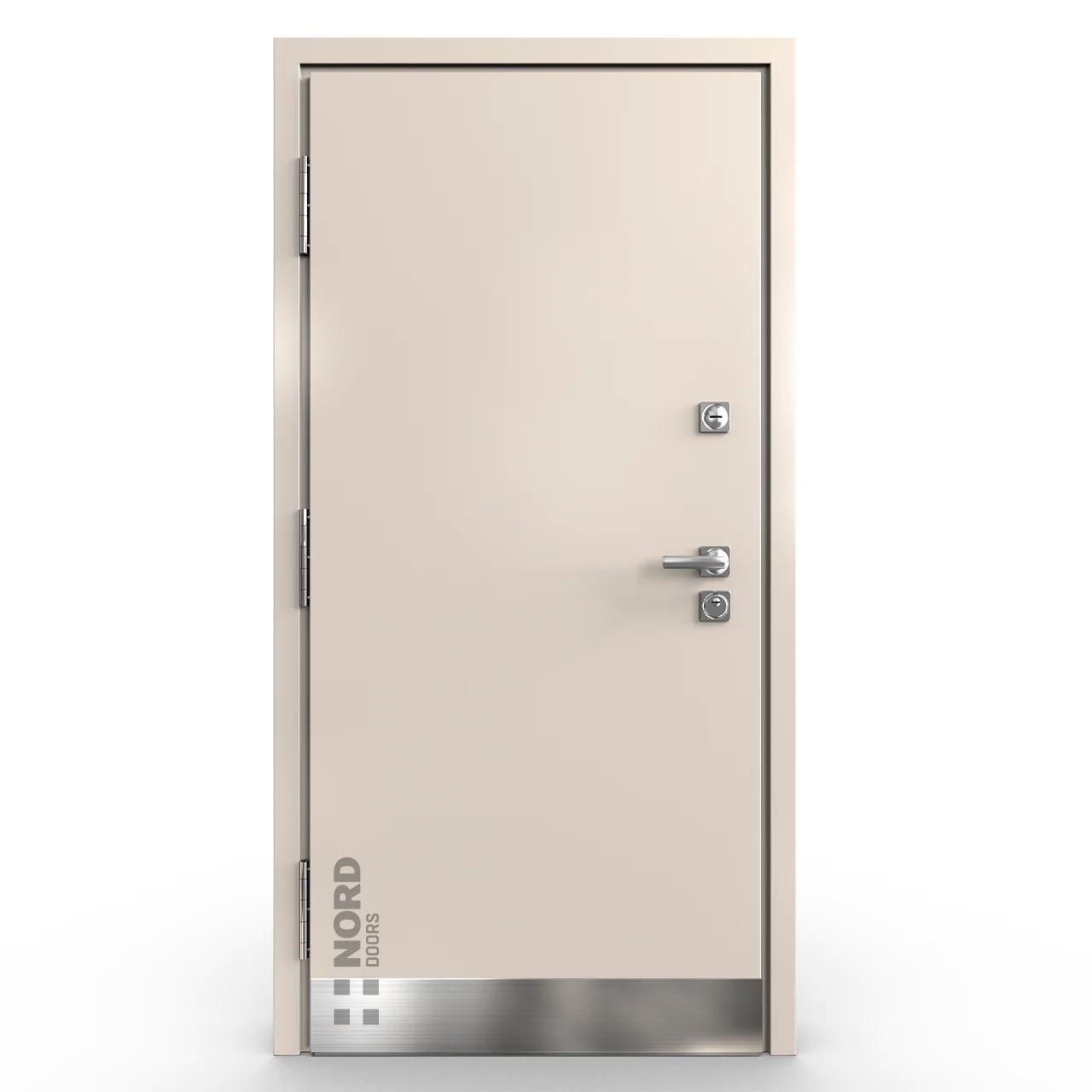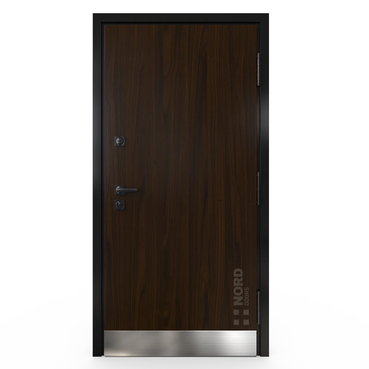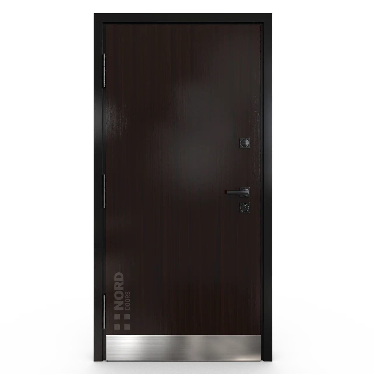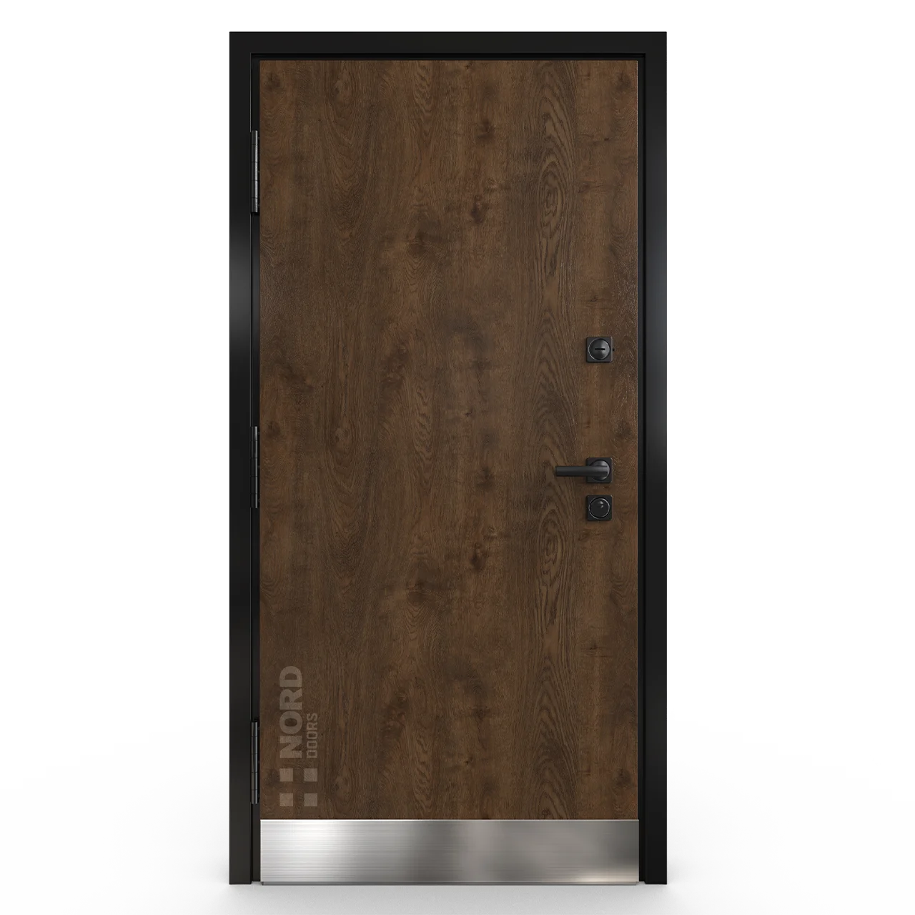 - NORD 85 — элитная утепленная дверь с технологией терморазрыва коробки и полотна для исключения мостика холода, термоизолирующим заполнением и двойным полноценным контуром уплотнения.