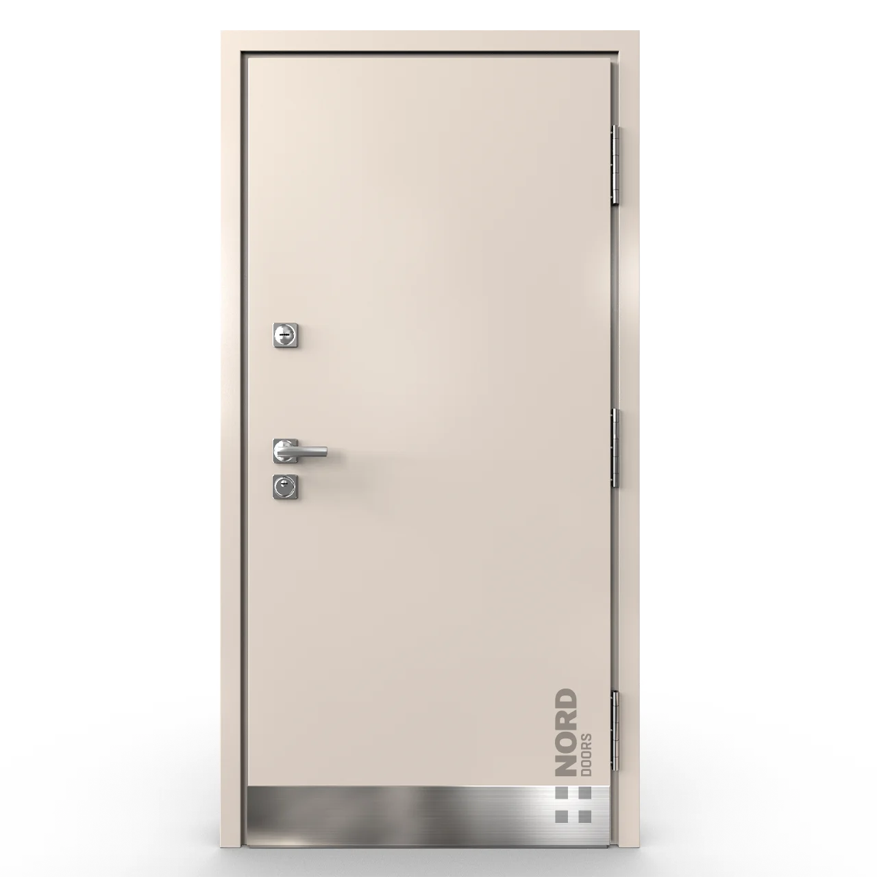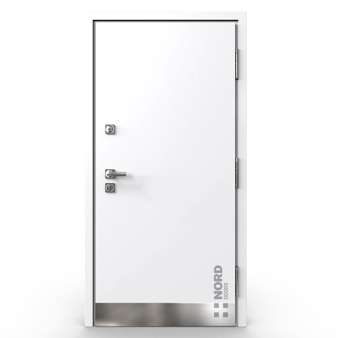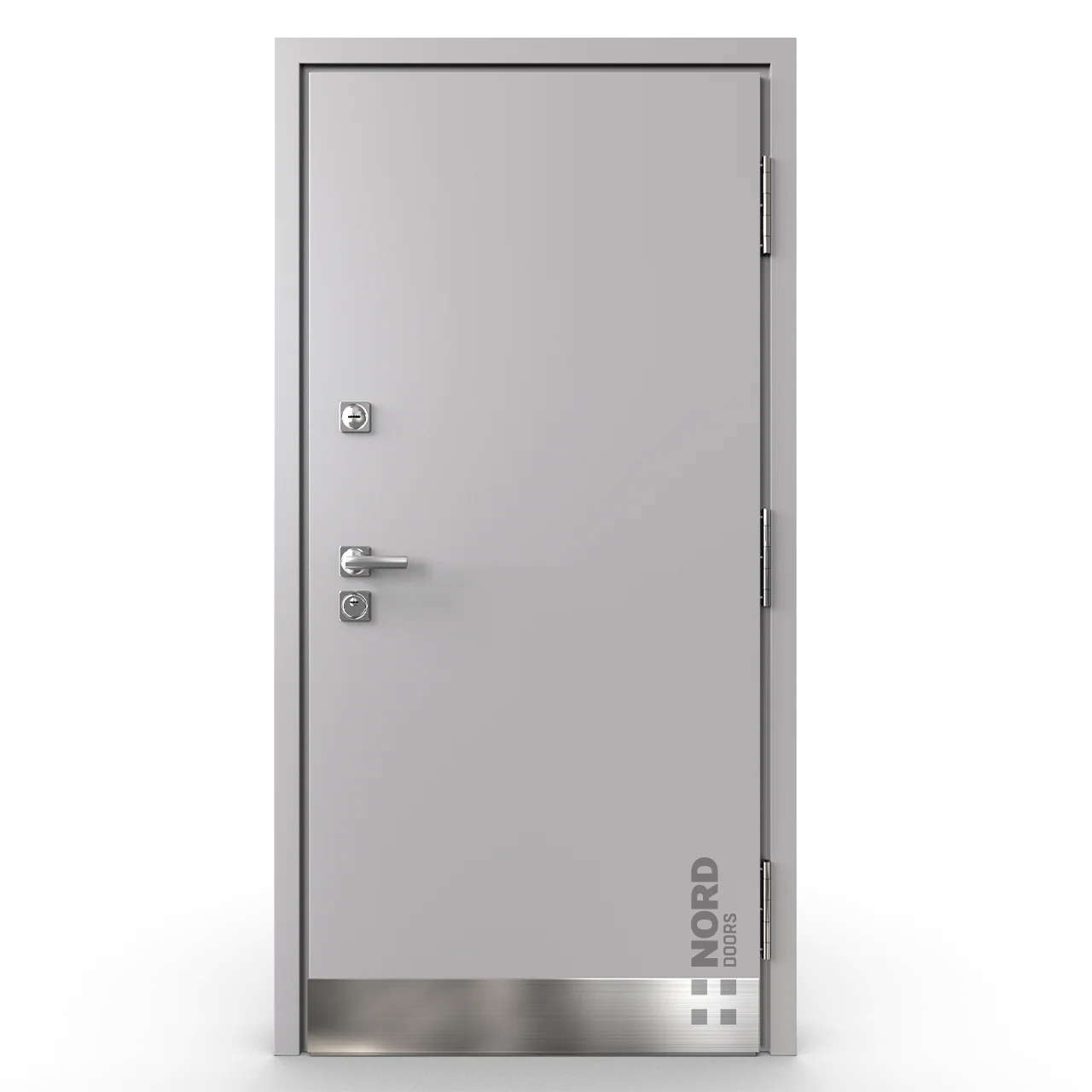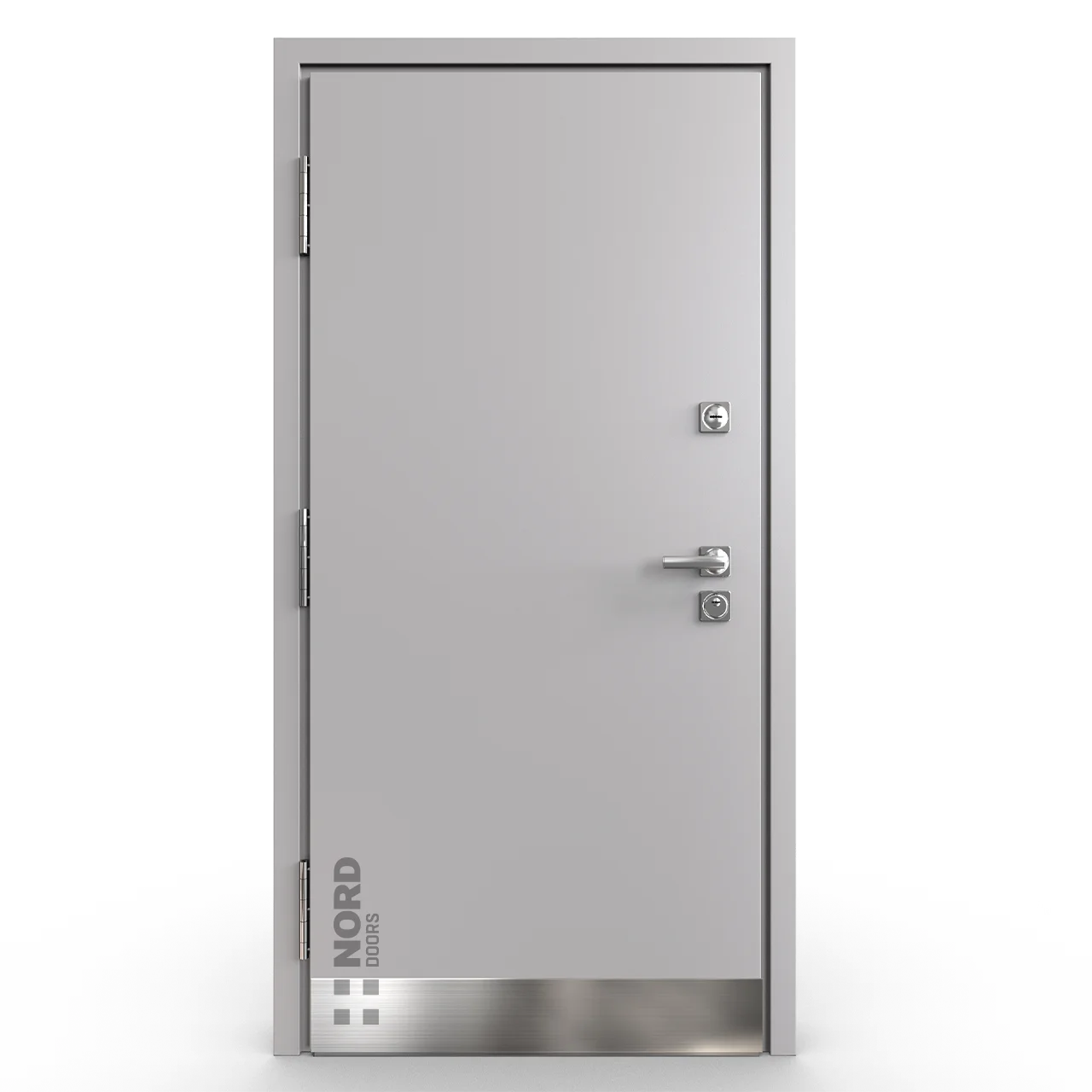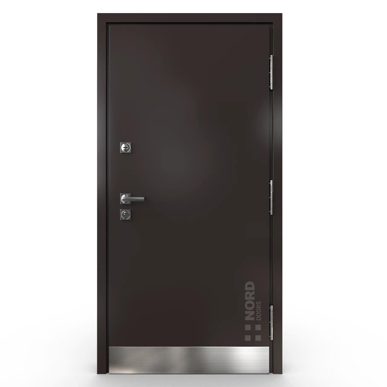 - NORD 85 — элитная утепленная дверь с технологией терморазрыва коробки и полотна для исключения мостика холода, термоизолирующим заполнением и двойным полноценным контуром уплотнения.