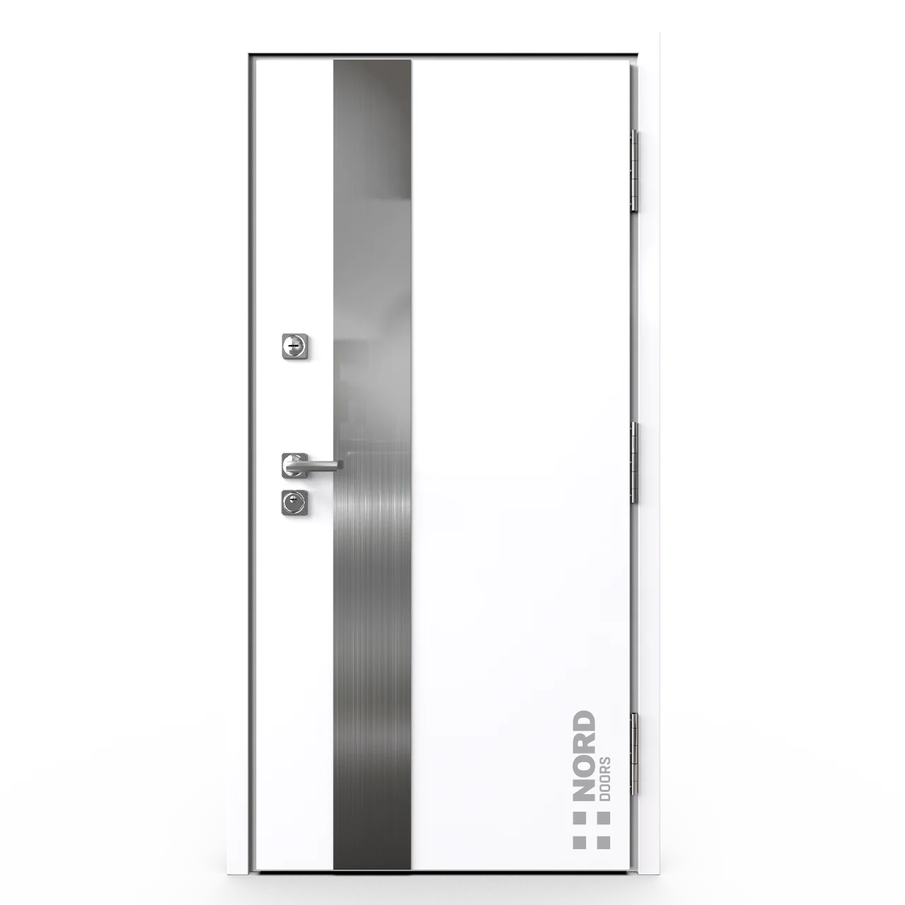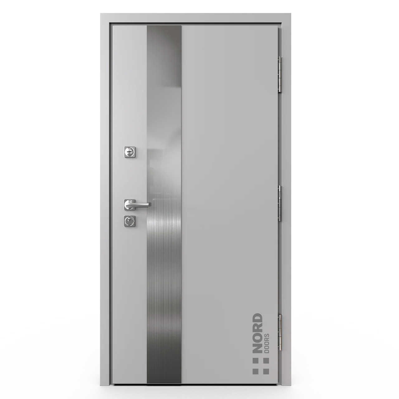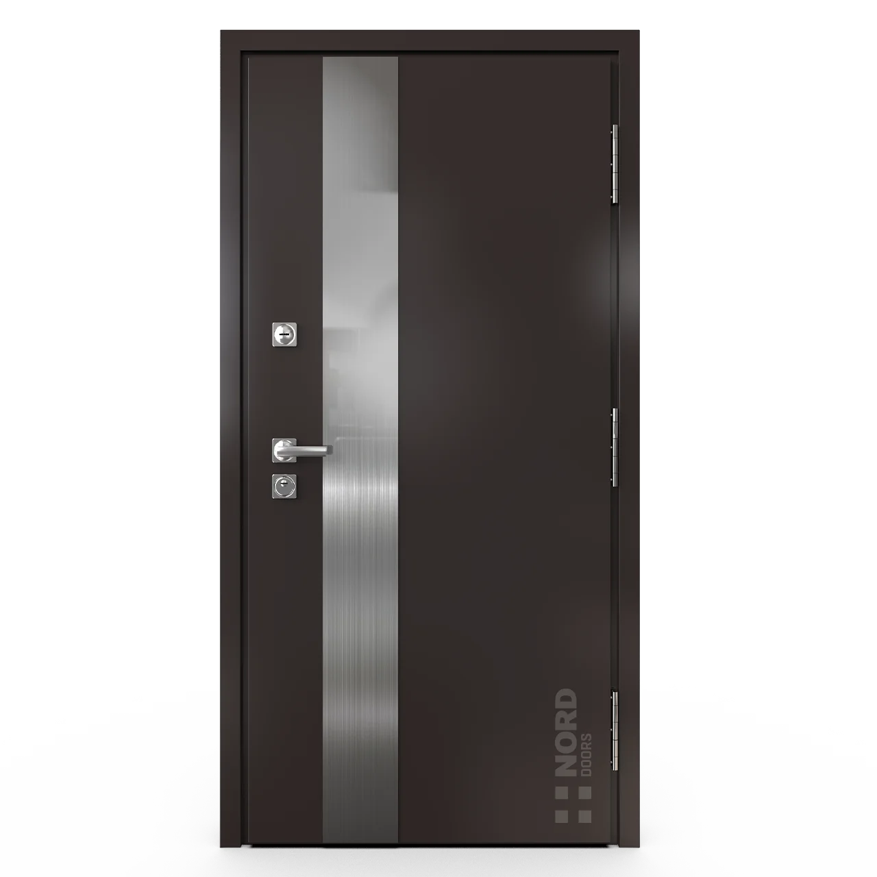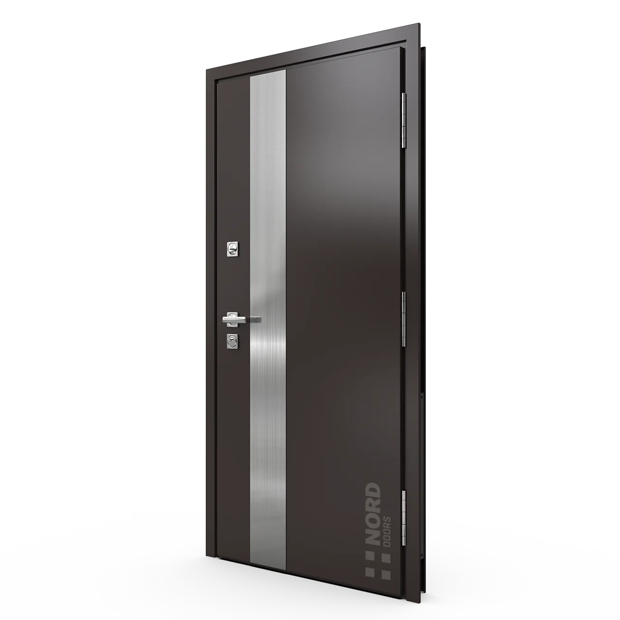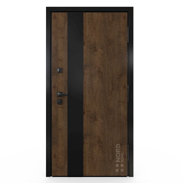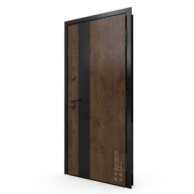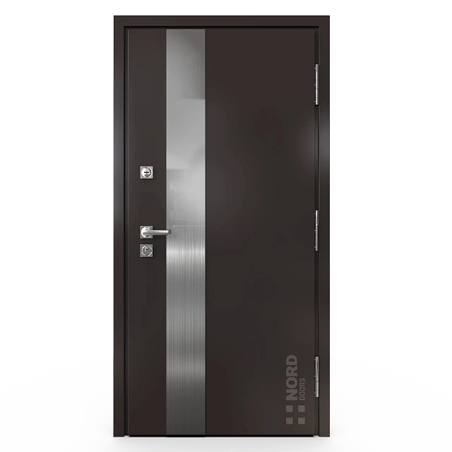 - NORD 85 — элитная утепленная дверь с технологией терморазрыва коробки и полотна для исключения мостика холода, термоизолирующим заполнением и двойным полноценным контуром уплотнения.
